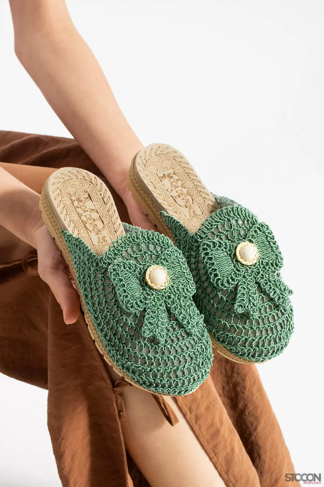 STOCON Kadın Fiyonklu Aksesuar Triko Ev Ofis Dışarı Çeyizlik Hediyelik Günlük Terlik