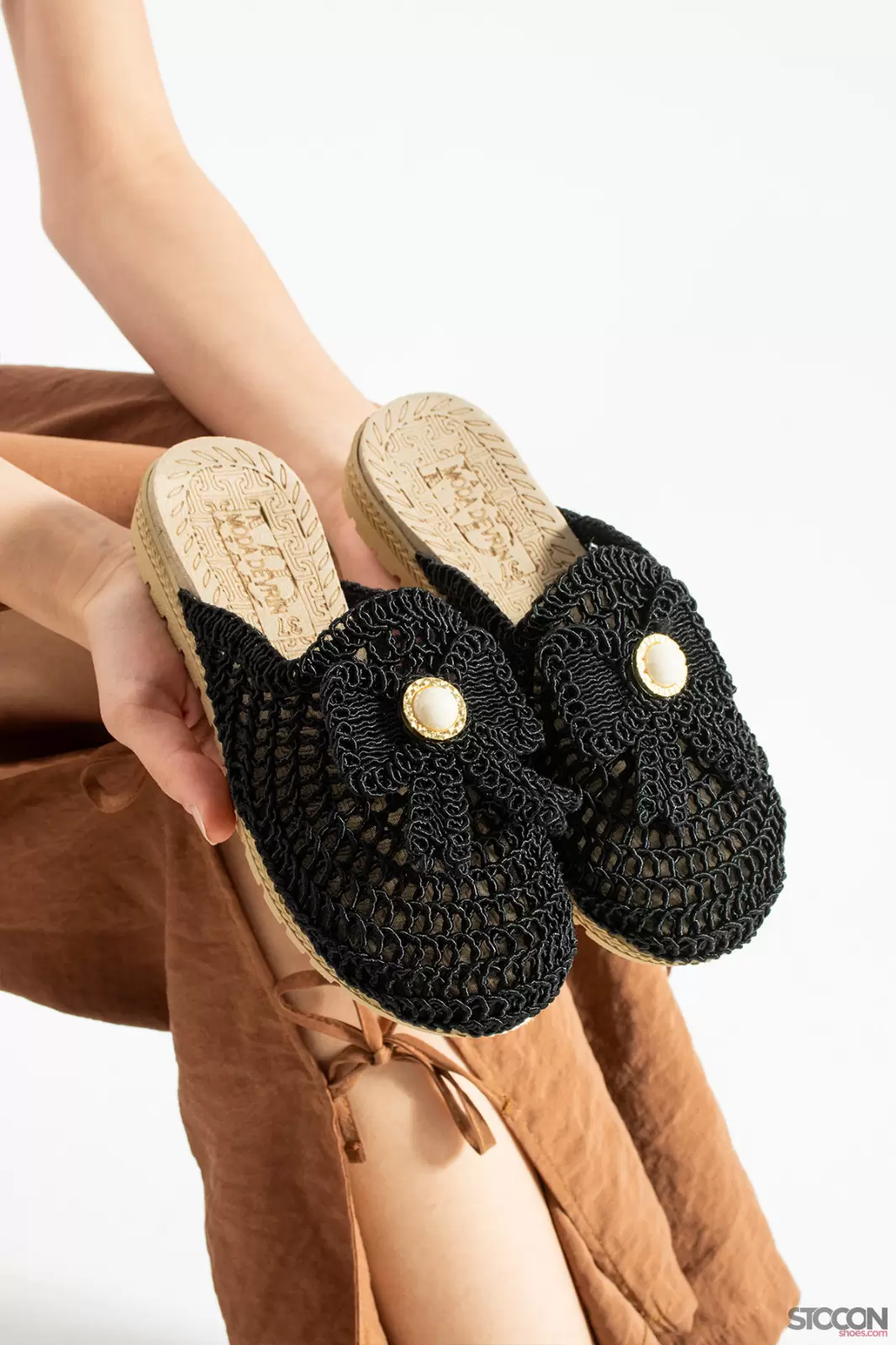 STOCON Kadın Fiyonklu Aksesuar Triko Ev Ofis Dışarı Çeyizlik Hediyelik Günlük Terlik