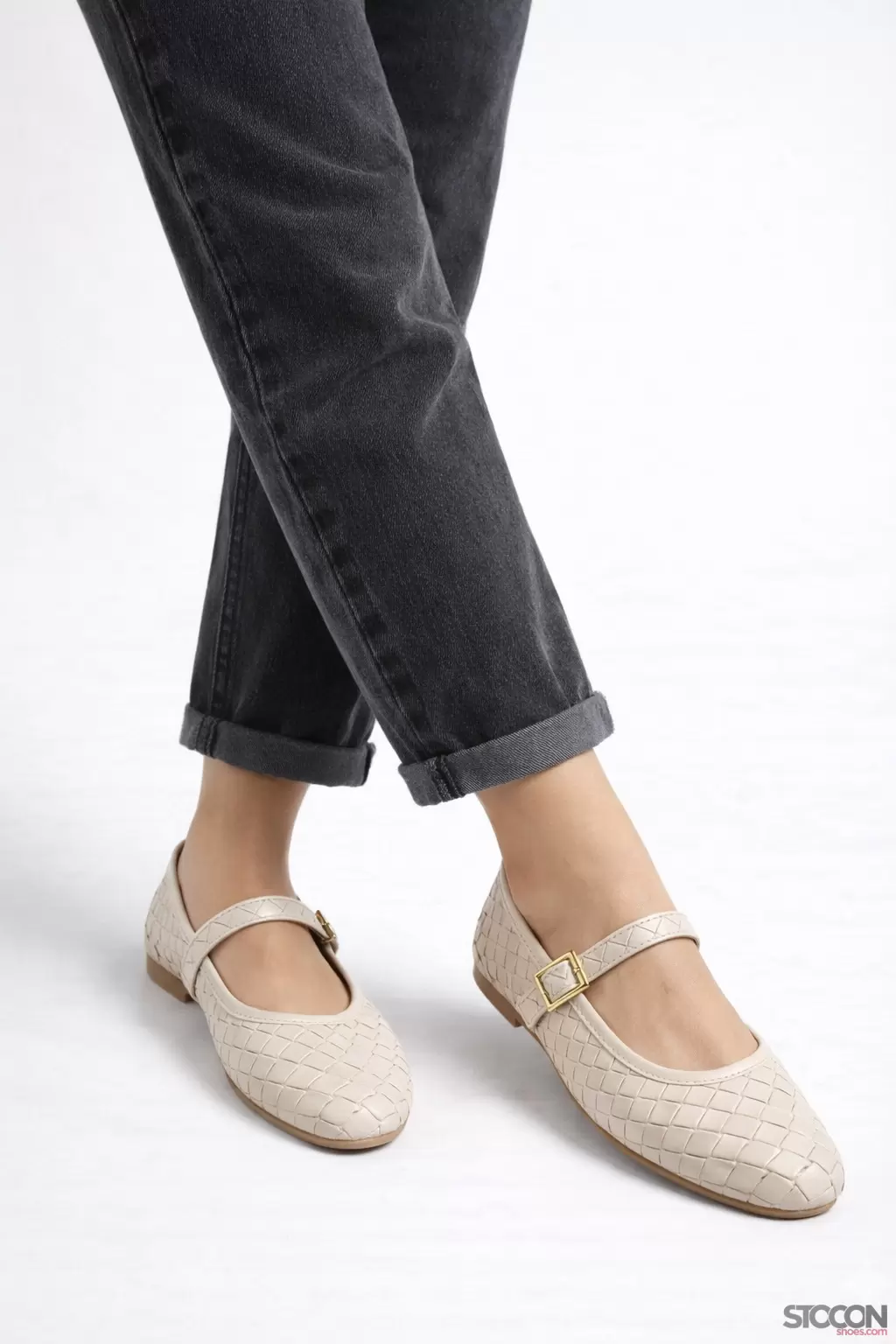 STOCON Kadın Krem Örgü Babet Ortopedik Hafif Taban Günlük Babet Ofis Ayakkabısı
