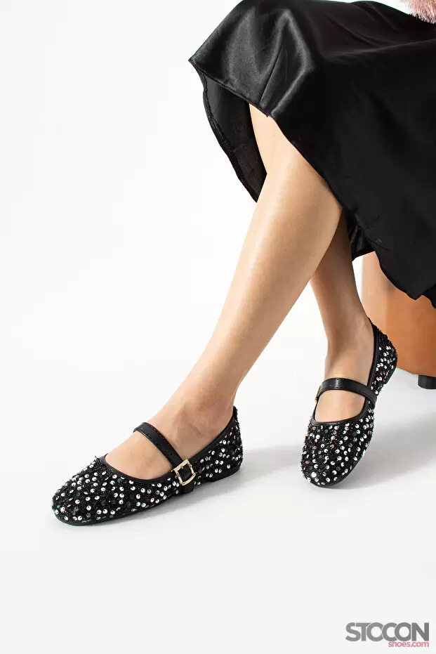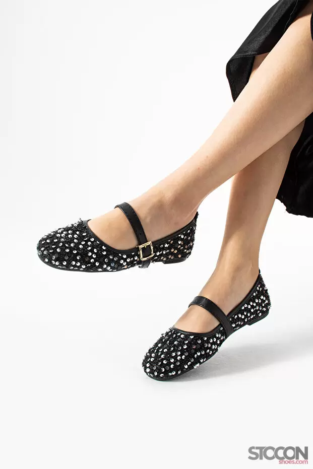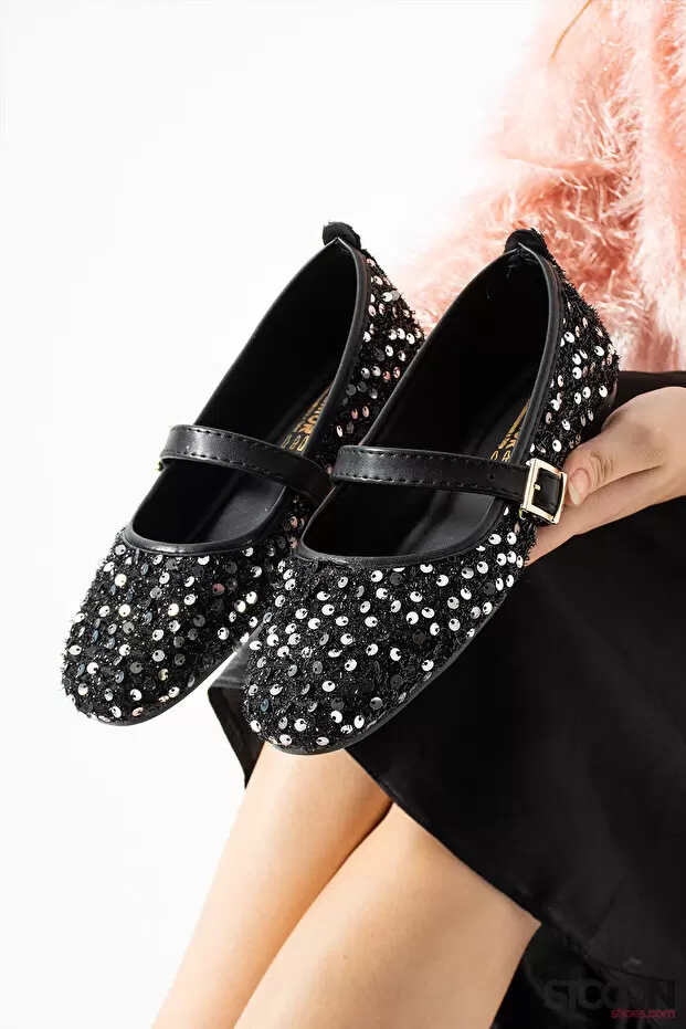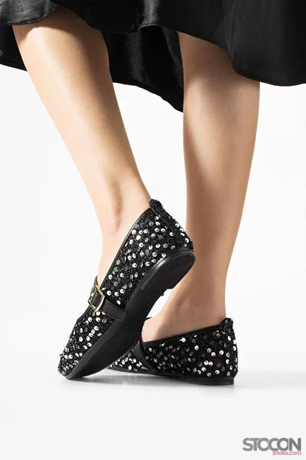 STOCON Simli Gümüş Pullu Mary Jane Babet Şık Tokalı Ortopedik Taban Günlük Ayakkabı